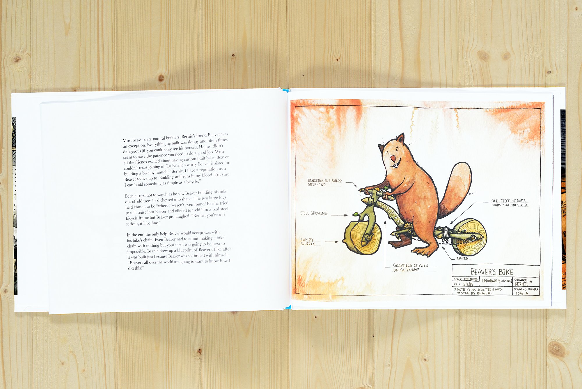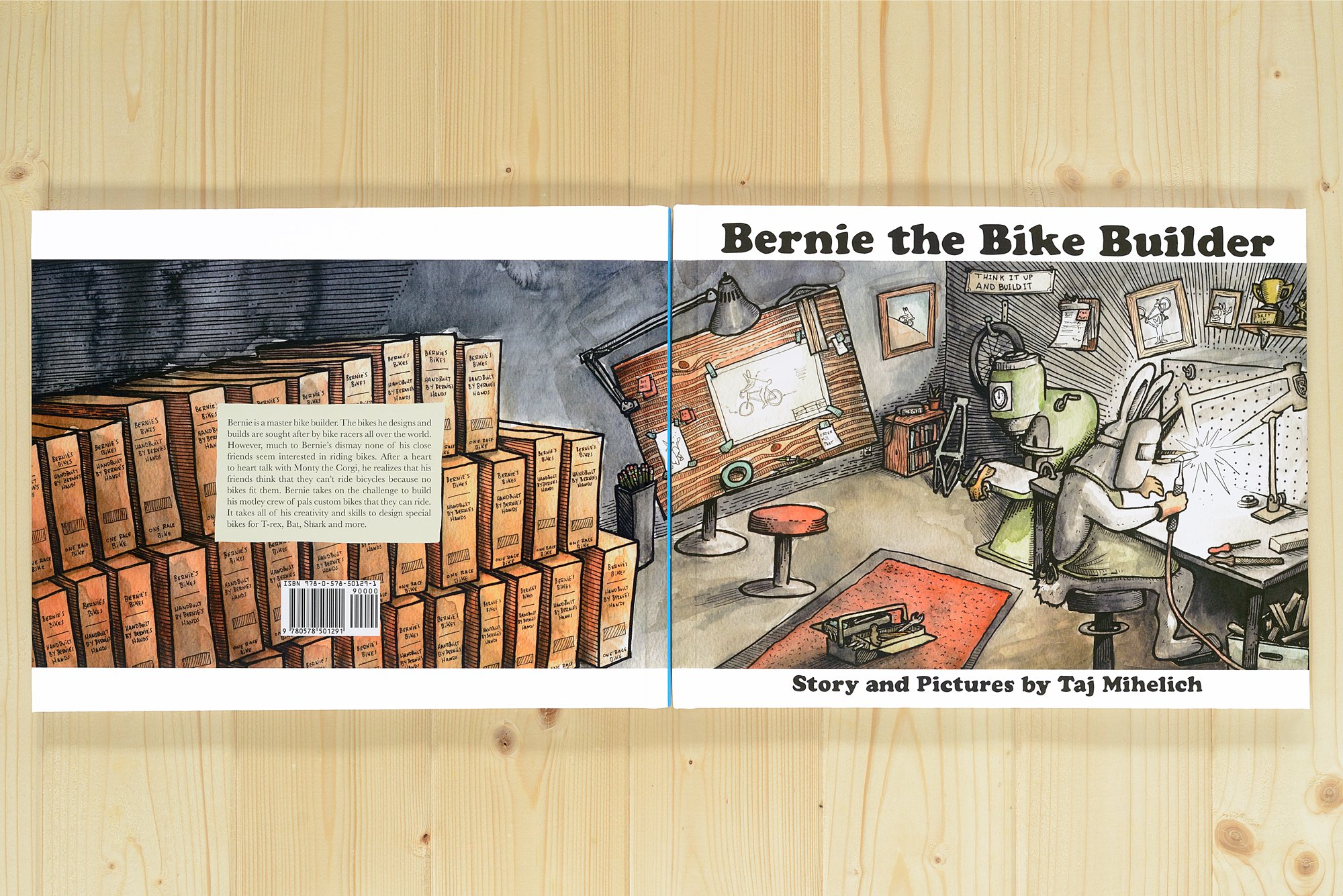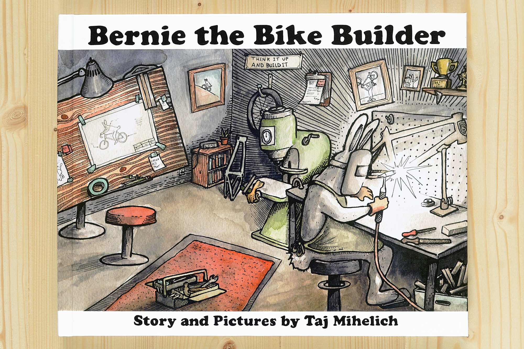 'Bernie the Bike Builder' is the brightest peek yet into the colorful world of Taj Mihelich's busy mind. Whimsically written and vividly illustrated by the life-long lover of all things two-wheeled, Taj's first book follows an industrious rabbit and his Corgi pal Monty as the unlikely pair craft custom bicycles for a curious band of animal friends."