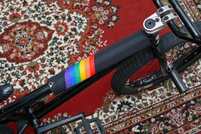 Black outer with rainbow stripes, and black inner.